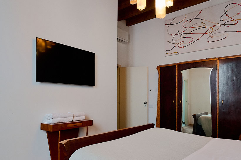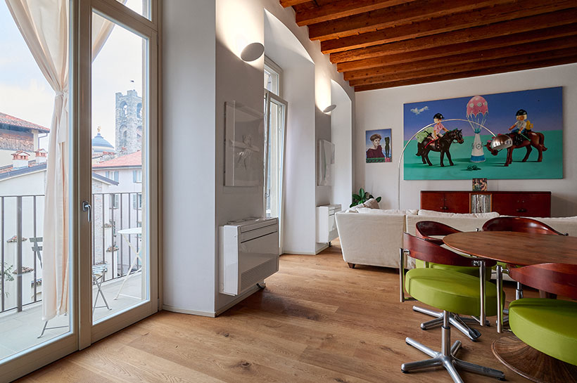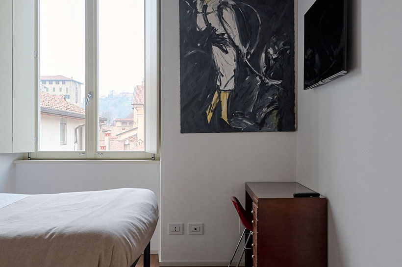 Camera con Vista è un moderno quadrilocale situato a Bergamo a pochi passi dal centro di Città Alta. Le stanze ampie e spaziose rendono questo appartamento la soluzione ideale per gruppi di amici e famiglie fino a 6 persone. Quadri bellissimi ed esclusivi dettagli artistici donano a questa casa vacanza un design unico e di lusso, mentre il pavimento in legno, realizzato con parquet pregiato, crea un’atmosfera luminosa e accogliente, perfetta per una vacanza all’insegna del comfort e del relax. Inoltre, il balcone esterno offre il panorama mozzafiato dei tetti e delle torri di Bergamo Alta e Bergamo Bassa, regalando agli ospiti un’esperienza davvero indimenticabile.