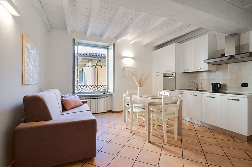 Domus Dea 2 è un moderno e spazioso bilocale arredato nelle morbide tonalità del beige e del rosa che evocano un’atmosfera accogliente e sofisticata, ideale per trascorrere una vacanza romantica, tra amici oppure in famiglia. Il bilocale vanta una comoda posizione centrale: situato in Città Alta a pochi minuti da Bergamo Centro, Domus Dea 2 è anche vicinissimo alle principali attrazioni turistiche della città, come il Duomo di Bergamo, la Cappella Colleoni e il Battistero. Questo appartamento vacanza è quindi la dimora ideale per chi desidera vivere un’esperienza indimenticabile alla scoperta delle meraviglie architettoniche e dei panorami mozzafiato unici di Bergamo Alta.